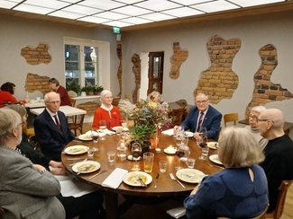 Parin viime hetkellä tulleen peruutuksen jälkeen 19 jäsentä ilmoittautui teatteriin ja sen jälkeiseen ruokailuun. Alaosaston kustantama ruokailu järjestyykin viereisessä, uudessa Madame-ravintolassa. Uusi ravintola osoittautui vallan hyväksi ruokapaikaksi restauroiduissa, vanhoissa Frenckellin konttoritiloissa aivan teatterin vieressä.
