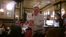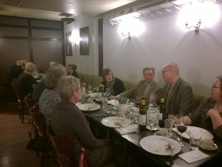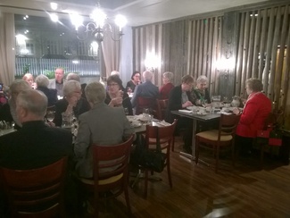 ![]() Ravintola Astorin kellarikabinetti | ![]() Kolmisenkymmentä jäsentä osallistui ruokailuun |