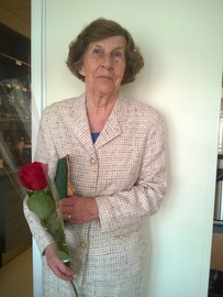 ![]() ja Riitan rintaan. | ![]() Yhteiskuvassa vasemmalta Ritva Ahlgren, Anna-Liisa Mikkola, Pekka Koivula, Riitta Jytilä ja Pentti Kulla. |