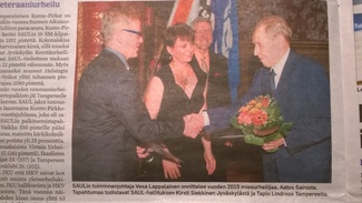 ![]() Tampereen alaosaston jäsen Aatos Sainio palkittiin SAUL:n vuoden 2015 miesurheilijana |