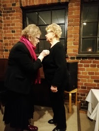 ![]() Ikäisekseen pirteät yli yhdeksänkymppiset Irja ja Ville Himanen | ![]() Paikalla oli tusinan verran alaosaston jäseniä |