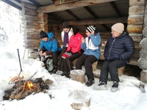 ![]() Hiihtäjät Lampivaaran majan edessä | ![]() Munkkikahveilla Lampivaarassa |