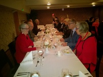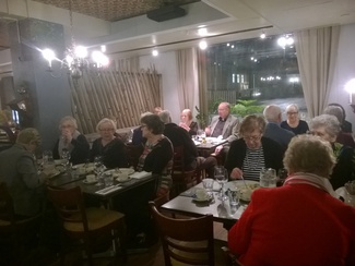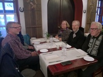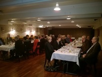 ![]() Ravintola Astorin kellarikabinetti | ![]() Kolmisenkymmentä jäsentä osallistui ruokailuun |