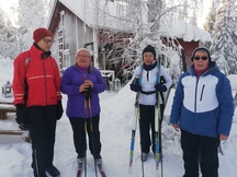 Talvi oli edellisen viikon vesisateen jälkeen aivan kohdallaan. Lunta 30-40 cm ja koko viikon pakkanen vaihteli yhdestä noin kymmeneen asteeseen. Siis ihanteellinen sää harrastaa liikuntaa - kukin tavallaan. Sauvoilla joko suksien kanssa tai ilman suksia. Jos valitsi sukset mukaan niin olosuhde oli loistava. Ensimmäisen takkuisen päivän jälkeen keli oli mainio ja joka aamu ajetut ladut olivat aivan ykkösluokkaiset. Ehkä yhdet parhaista, mitä olen hiihtänyt. Ja olen hiihtänyt aika paljon.