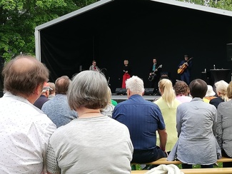 Tampereen alaosaston iskuporukka vieraili 17.7. Laukon Kartanon puistokonsertissa. Tänään oli vuorossa hienoääninen Aili Ikonen ja muusikkoina Jukka Perko & Avara.