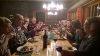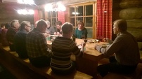 ![]() Pitkän pöydän ääressä maistui poronkäristys sopivien juomien kyydittämänä | ![]() Pöytäkin oli juuri hyvänkokoinen |
