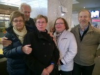 ![]() Riitta Jytilä, Rauno Lehtonen, Terttu Hirvonen, Helena ja Pentti Kulla | ![]() Terttu, Riitta ja Rauno odottavat ..... |