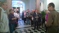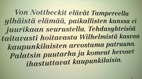 Rakennus oli saatu pitkän hiljaiselon jälkeen hienoon kuntoon ja erinomainen oppaamme selvitteli Knottbeckin suvun tarinaa. Suku on ollut erittäin merkittävä tekijä Tampereen teollistumisen kannalta, sillä työntekijöitä oli parhaimmillaan pari tuhatta henkeä. Paljon traagisia tapahtumia oli vuosien saatossa suvulle tapahtunut, mutta ehkä surullisimmat hetket talo koki tasavallan itsenäistymisen aikoihin. Silloin talo oli raakojen taistelujen tapahtumakenttänä.