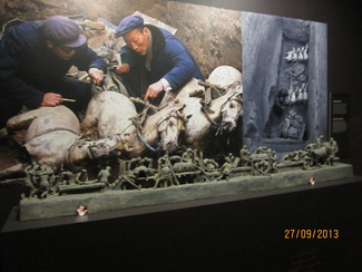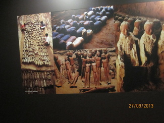 Kiinalaiset uskoivat elämän jatkuvan kuoleman jälkeen ja siksi vainajalle tuli varustaa kaikkea mitä oli ollut maanpäälisessä elämässä. Saimme kuulla mielenkiintoisen kerronnan eloisan oppaan johdolla.Tarunomaisten haudanvartijoiden ja pronssi- ja kultavalujen ohella näyttelyssä on esillä myös muita hautalöytöjä