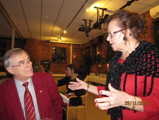Maukkaan Kokkipoikien toimittaman ruoan ja hyvien juomien kera viihdyimme juhlatiloissa iltakymmeneen saakka. Illan viihteeksi Lehtosen Rauno oli laatinut kohtuullisen vaikean tietokilpailun, minkä ykköspalkinnon pokkasivat Tuula Keivaara ja Penny Neva. Onnea heille!