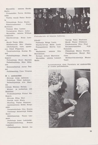 Alkon suhtautumista eläkeläisiinsä kuvaa hyvin allaoleva valokuva. Melkoisen herraseurueen saattelemana läksi varastonhoitaja Uuno Kupiainen eläkkeelle.
