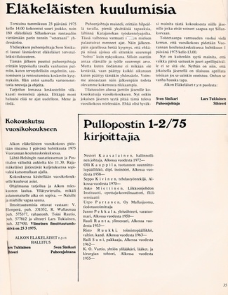 Oheinen pieni juttu oli vuoden 1960 Pullopostin kolmannessa numerossa. Artikkelin mukaan Alkon Eläkkeensaajain Yhdistyksen perustava kokous pidettiin 27.5.1960 ja siihen osallistui 49 eläkeläistä.