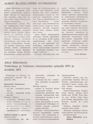 Alko järjesti eläkeläisille syysretken Turkuun 4.9.1969. Retkeen osallistui lähes 180 eläkeläistä.