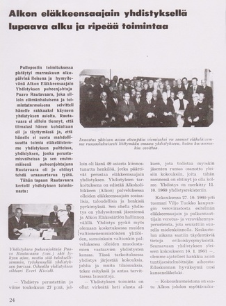 Alkon Eläkkeensaajain ensimmäinen puheenjohtaja Paavo Rautavaara (1960)
