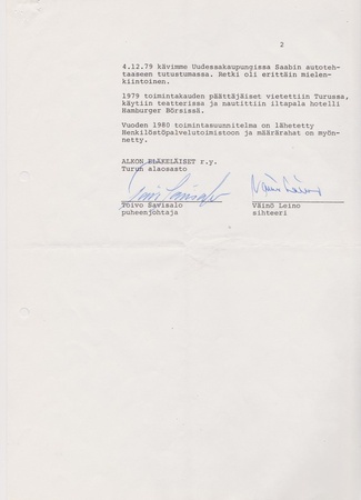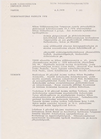 Turun alaosaston toimintakertomus vuodelta 1979