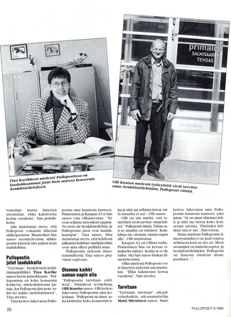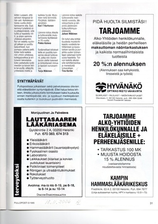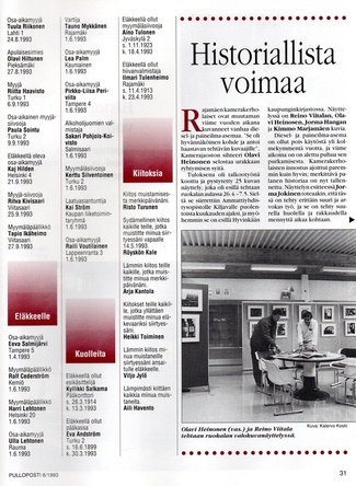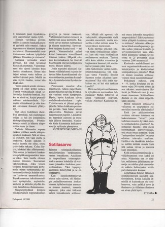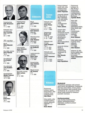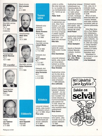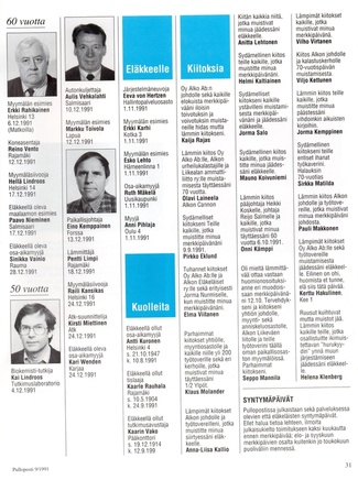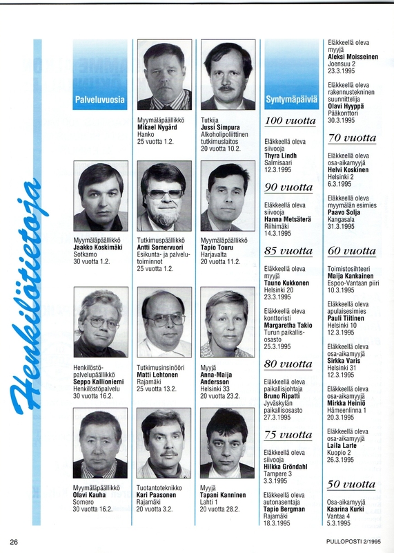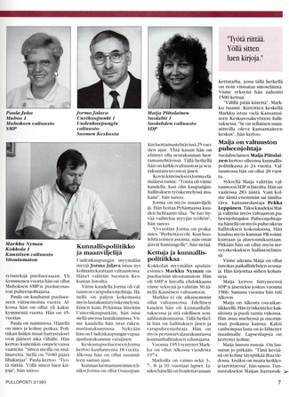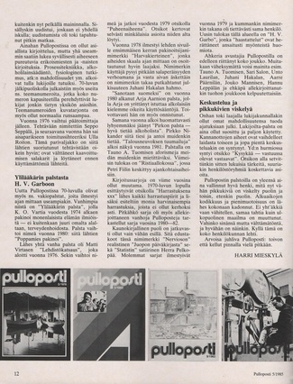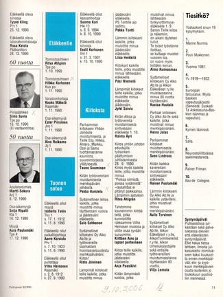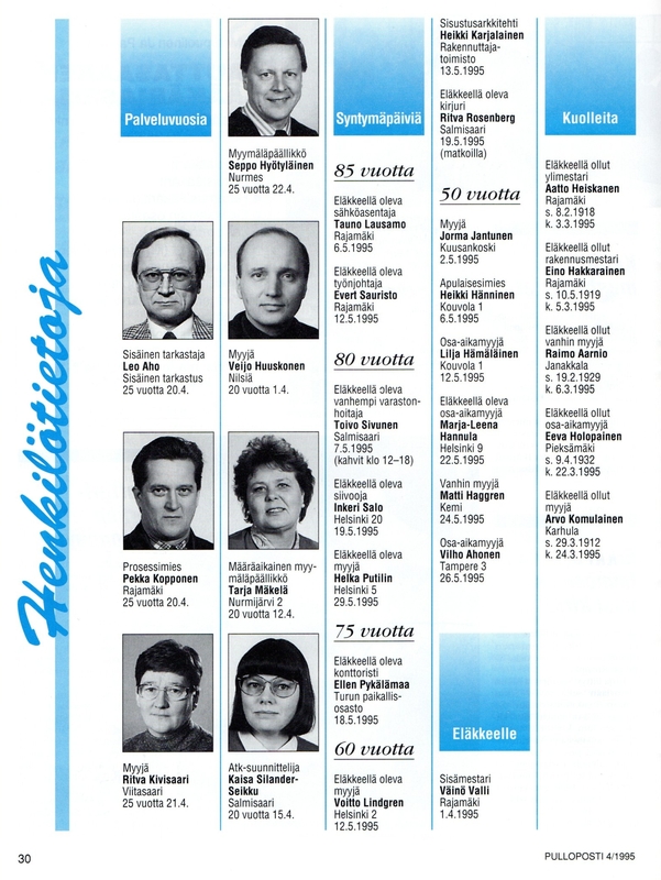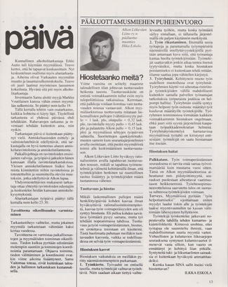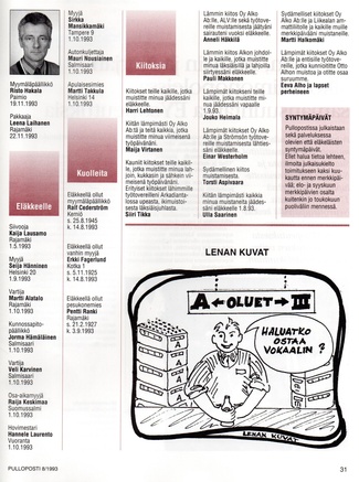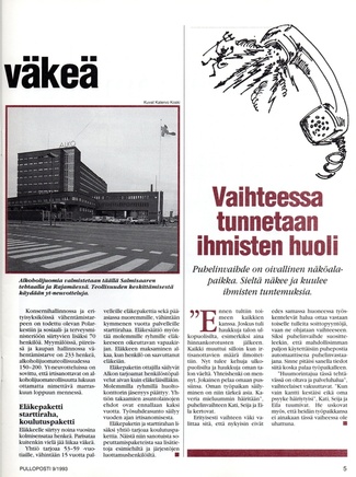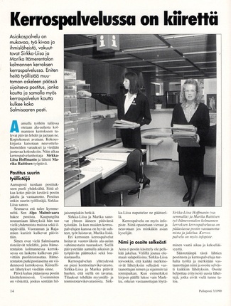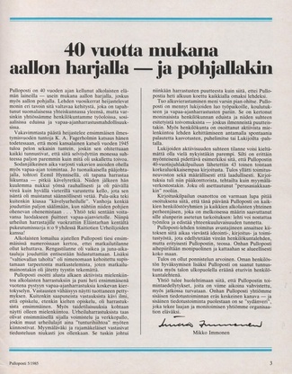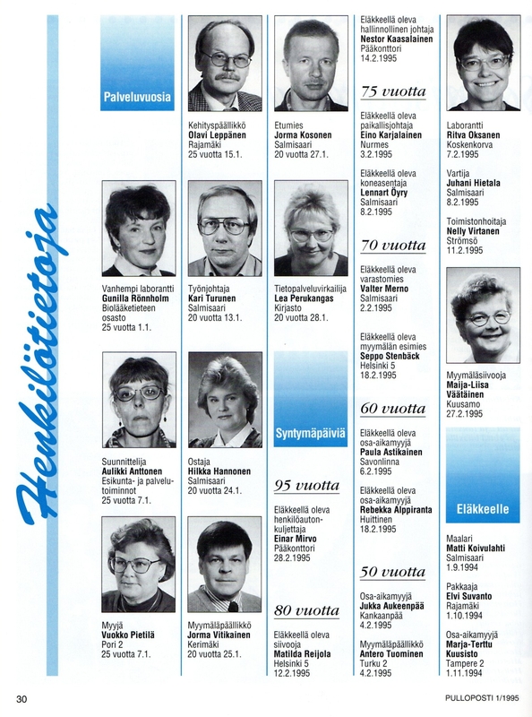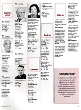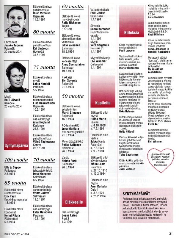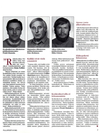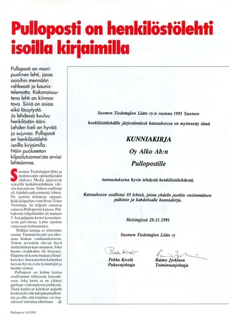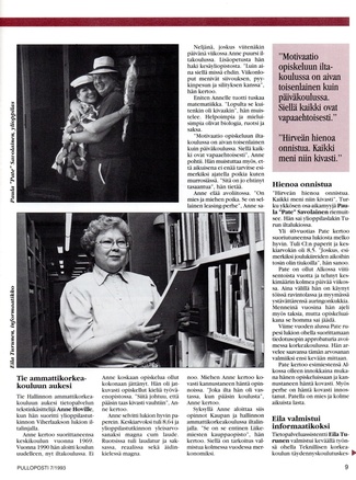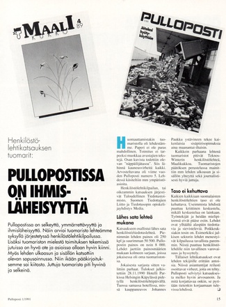 Pulloposti esitteli ja syvähaastatteli henkilökunnan edustajia. Kankaisen Maijan taustat ja mielipiteet tulivat selväksi tässä lehdessä. Maijan tunnuslause "Parempi myöhään kuin ei silloinkaan" sopii meille kaikille tänä päivänäkin.