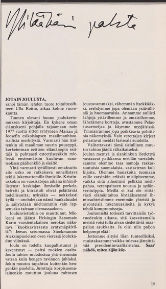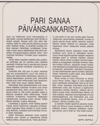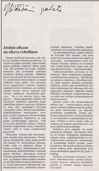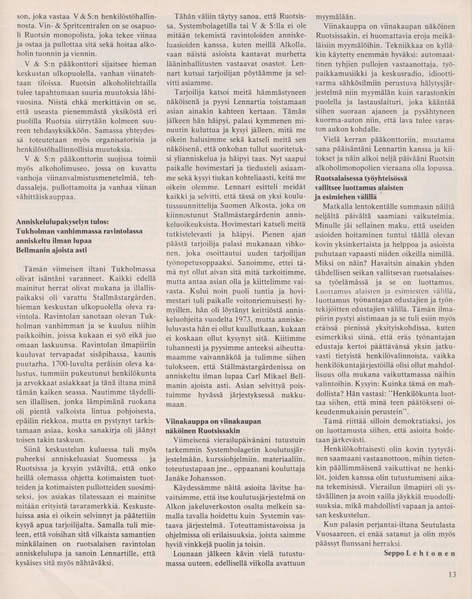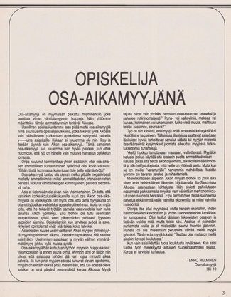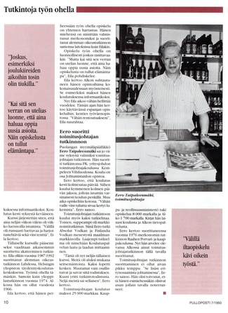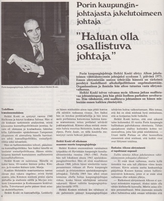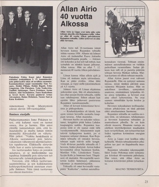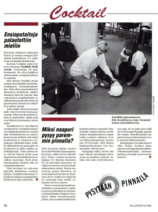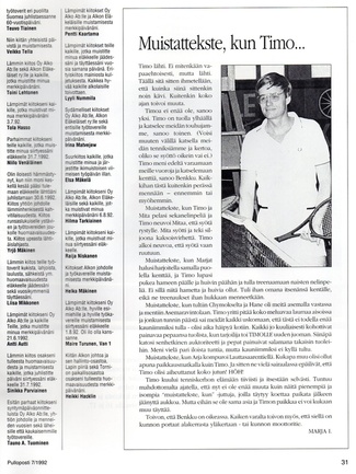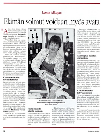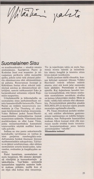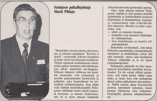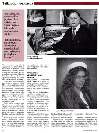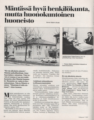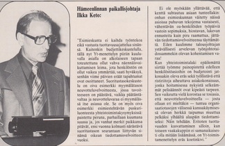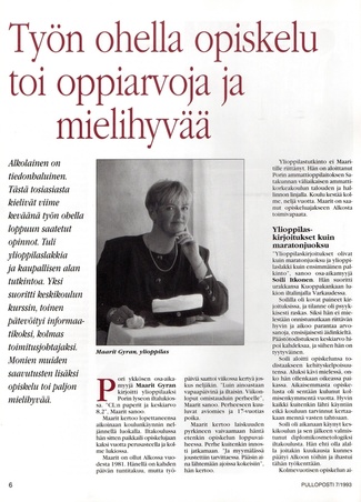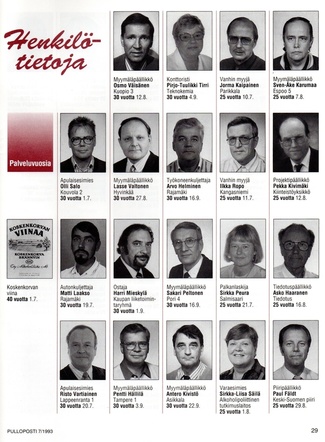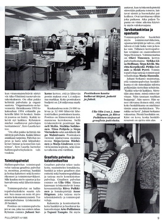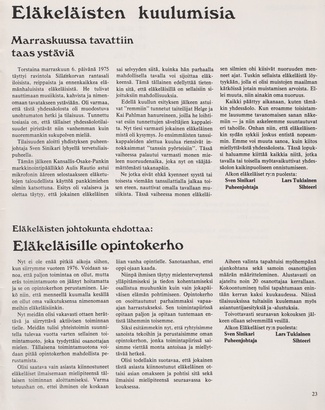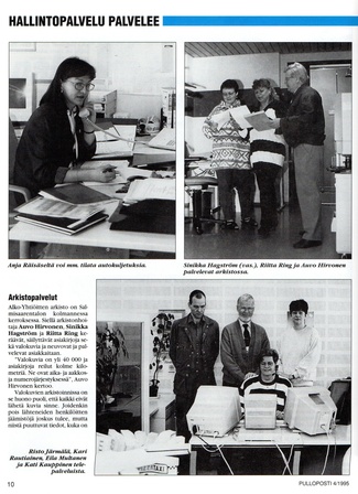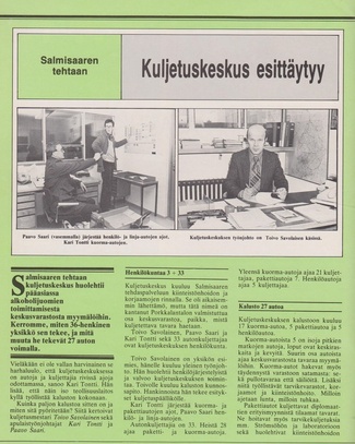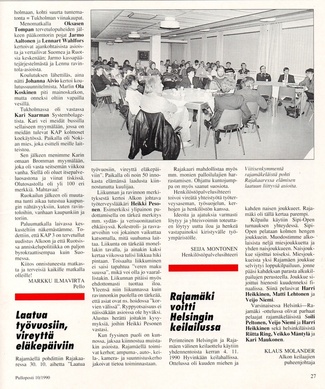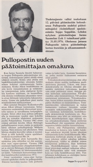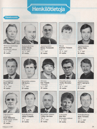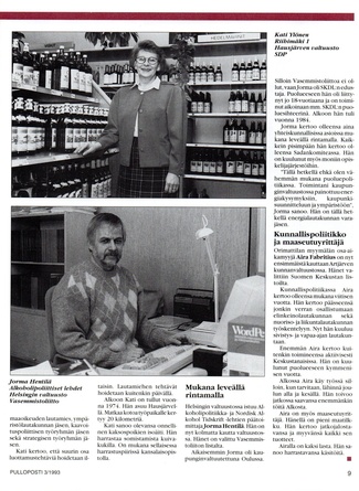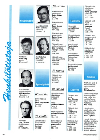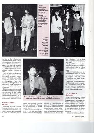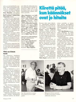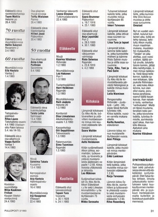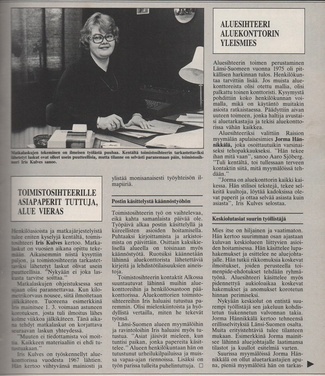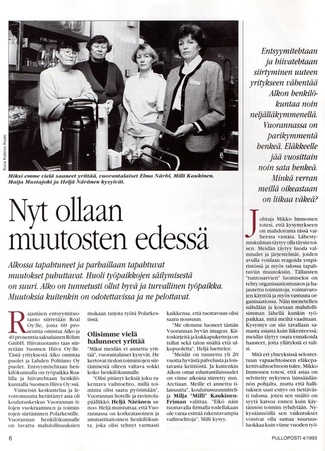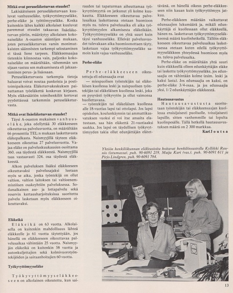 Pulloposti esitteli ja syvähaastatteli henkilökunnan edustajia. Kankaisen Maijan taustat ja mielipiteet tulivat selväksi tässä lehdessä. Maijan tunnuslause "Parempi myöhään kuin ei silloinkaan" sopii meille kaikille tänä päivänäkin.
