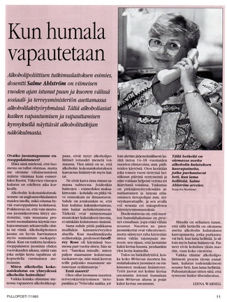 Hiukan suppeat Henkilötiedot juorusivat tavalliseen tapaansa alkolaisten ikääntymisestä.