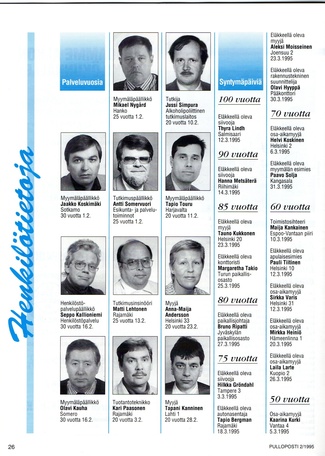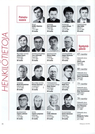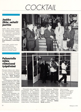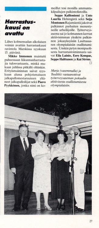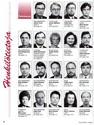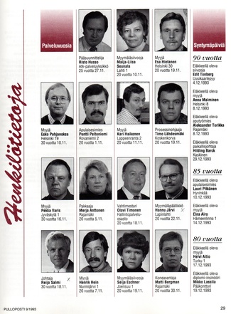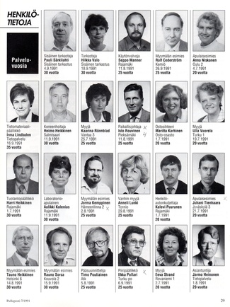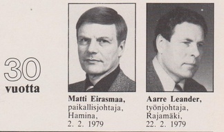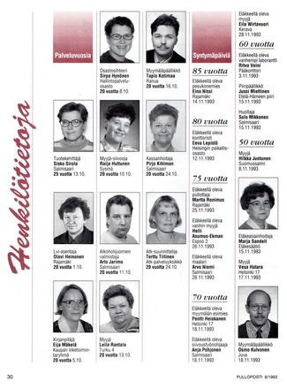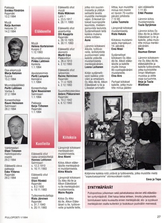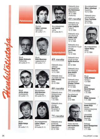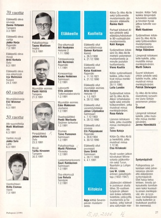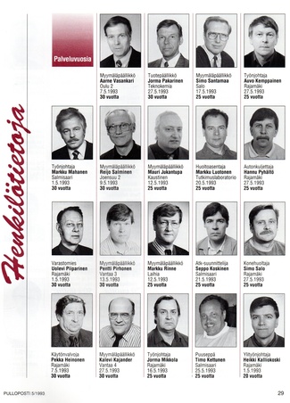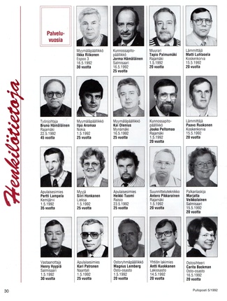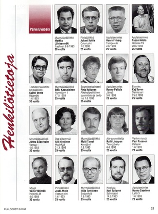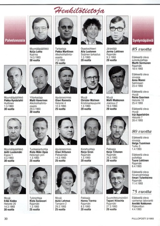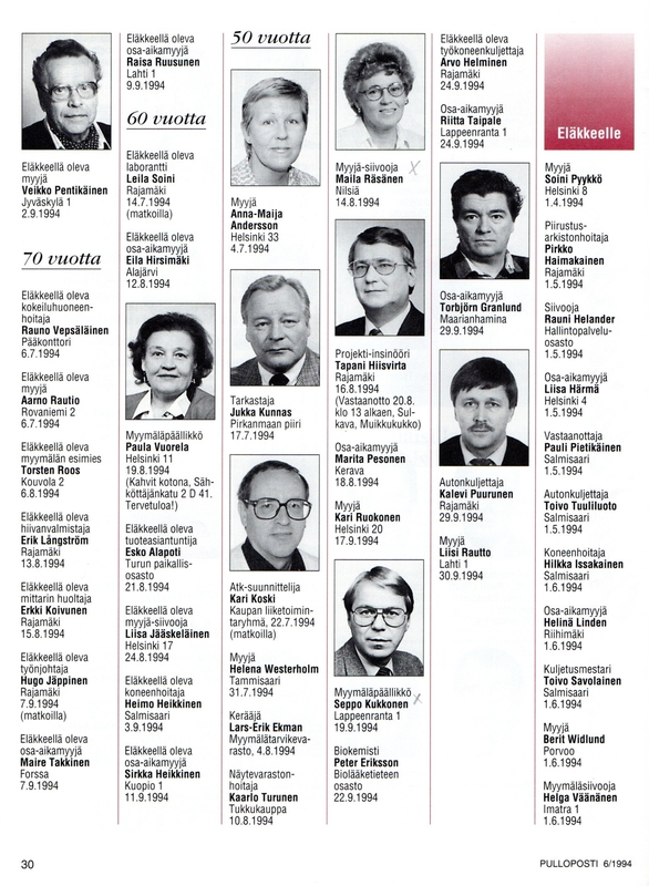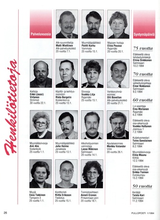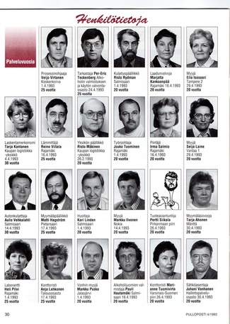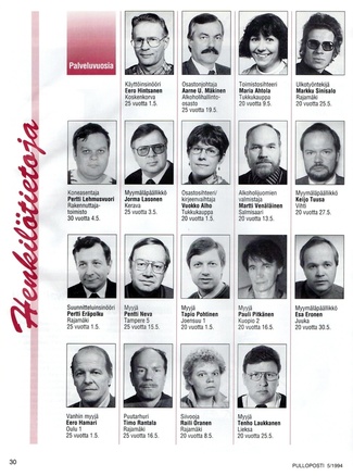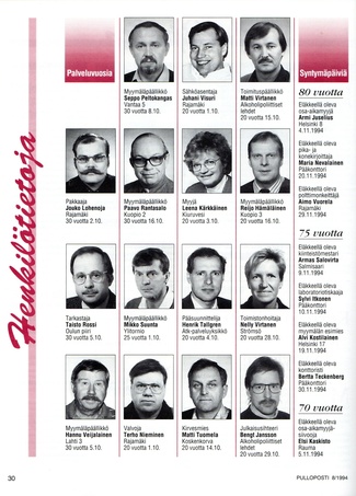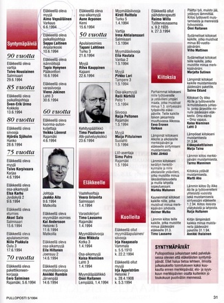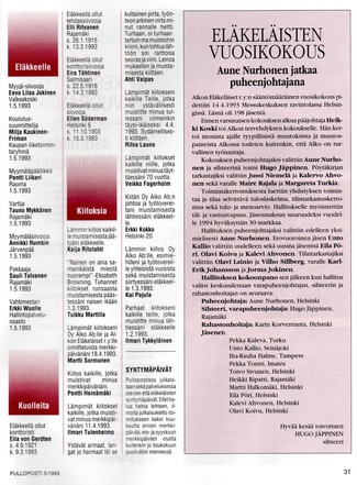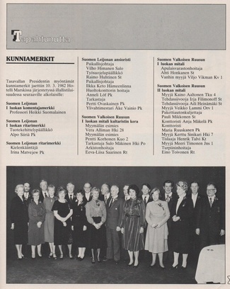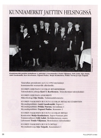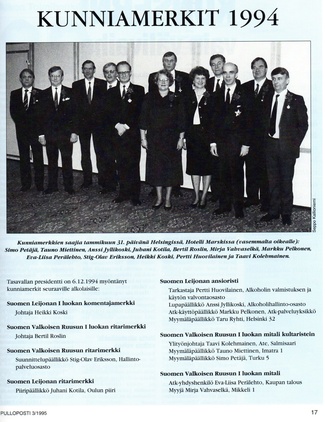 Vuonna 1994 kunniamerkeillä palkitut esiteltiin tässä Pullopostissa. Kunniamerkit jaettiin ja juhlittiin hotelli Marskissa 31.1.1995. Pääosin tuttua porukkaa!