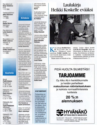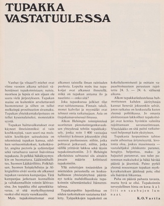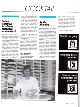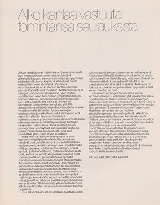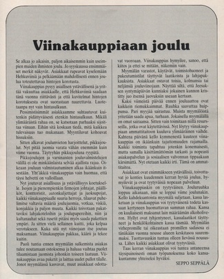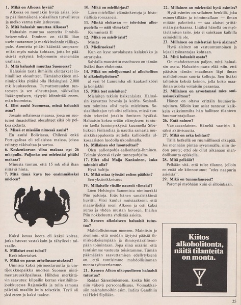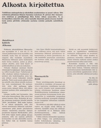 Tyhjän tilan täytteeksi oli saatu kaksi mainosta, joilla houkuteltiin alkolaisia ja Alkon eläkeläisiä tarkistuttamaan näköään ja hampaitaan. Hyviä alennuksiakin luvattiin.