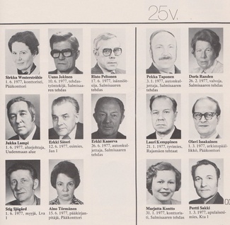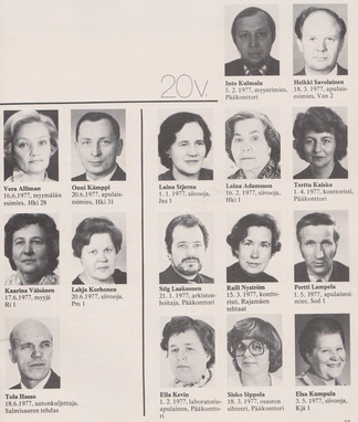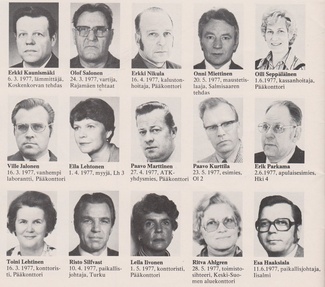 Vuonna 1975 eläkkeelle jäävät asettautuivat punainen ruusu rinnassaan Antero Kaijalaisen ja Karin Hanwegin ympärille.