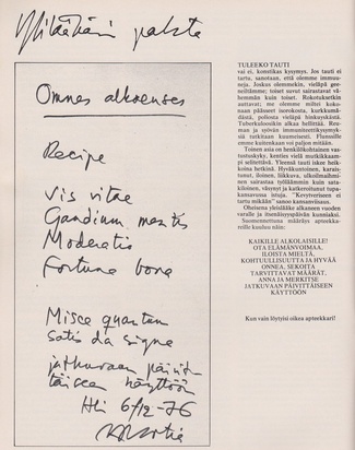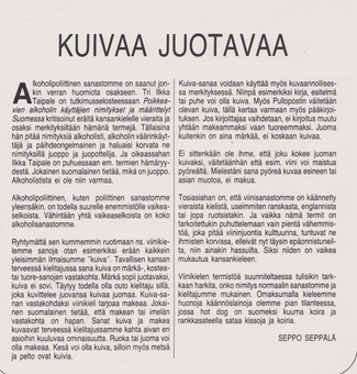 Kaksikymmentäkahdeksan sivua täyttä alkolaista asiaa sisälsi tämäkin Pulloposti.