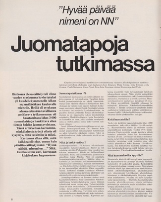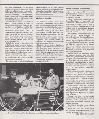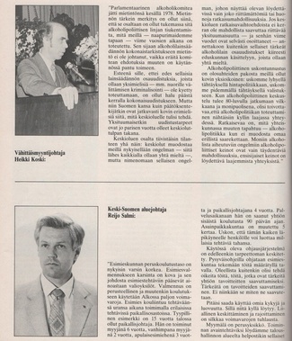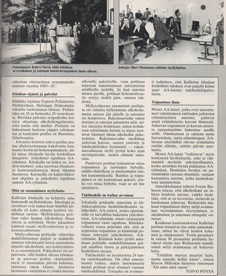 Oheisena Raili Heikinheimon laatima mielenkiintoinen historiikki siitä ketkä ovat hoitaneet alkolaisia potilaita ja millaisissa olosuhteissa.