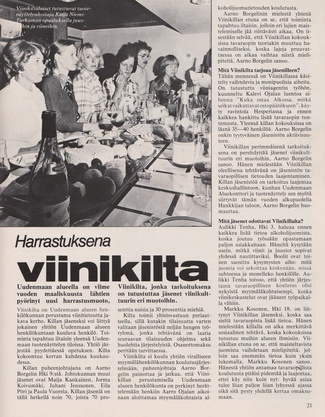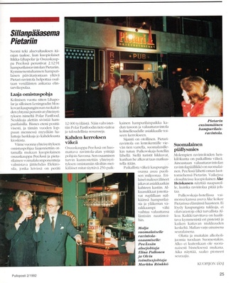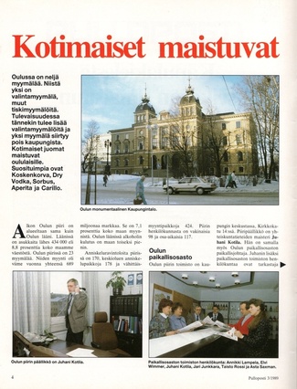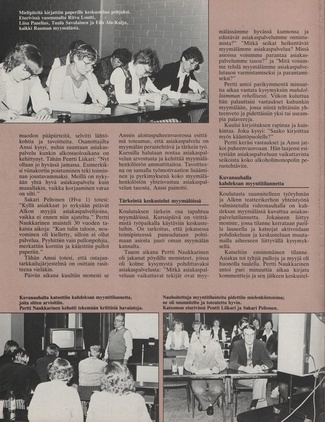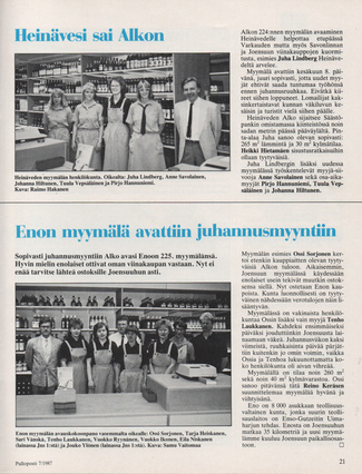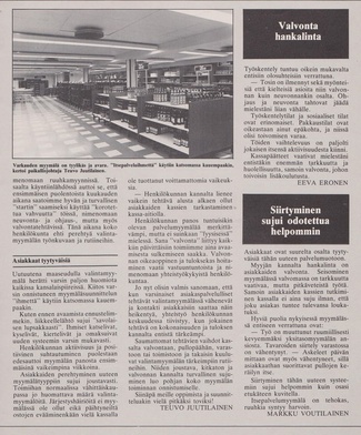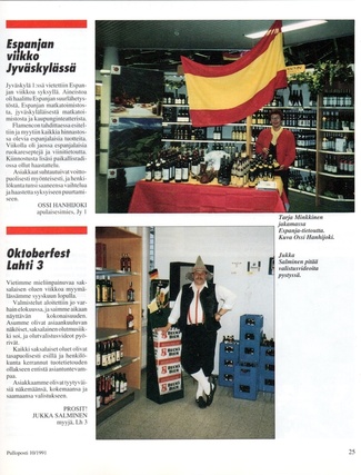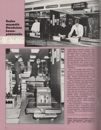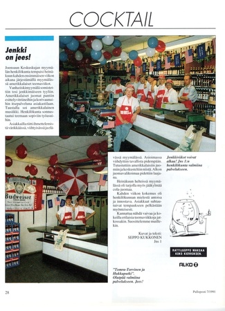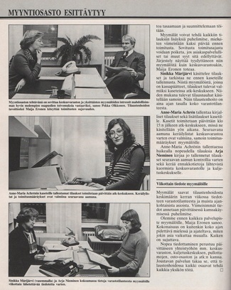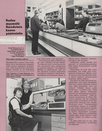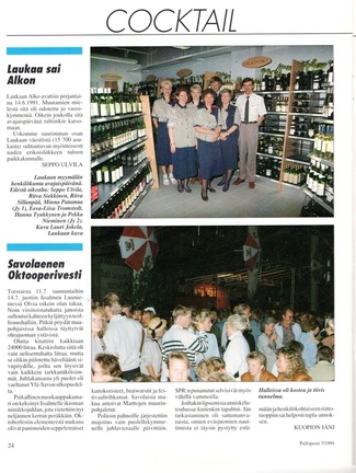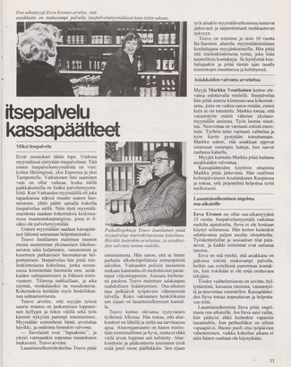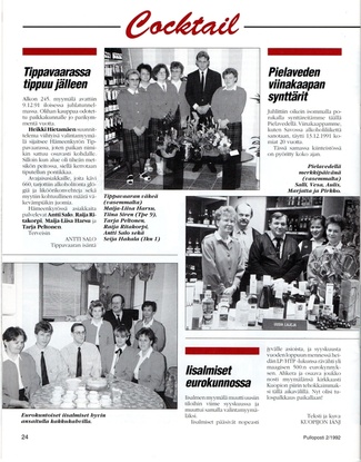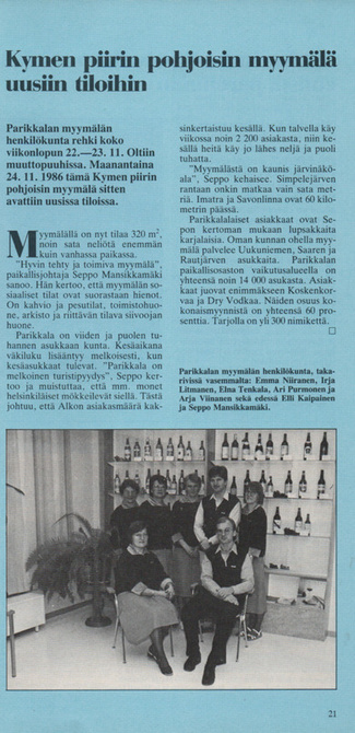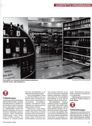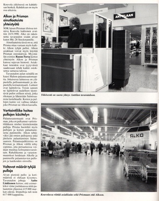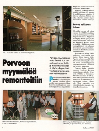 Kansikuva: Lappeenranta ykkösessä kokeillaan tilanhallintajärjestelmää ja somistetaan omin voimin. Erikoisuutena on mm. uusi viihtyisä erikoisviiniosasto. Seppo Kukkonen on myymäläpäällikkö, Raimo Hakanen Kymen piiripäällikkö.