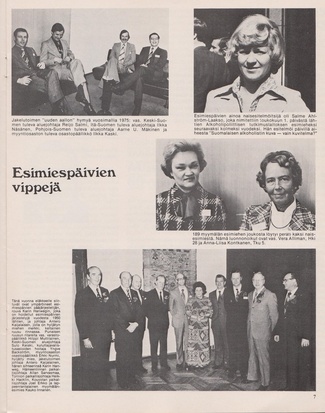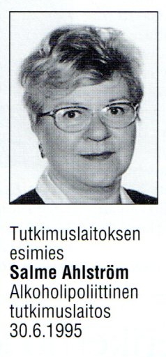 Esimiespäivien ainoa naisesitelmöitsijä oli Salme Ahlström-Laakso, joka oli juuri nimitetty 3 vuodeksi Alkoholipoliittisen tutkimuslaitoksen esimieheksi.