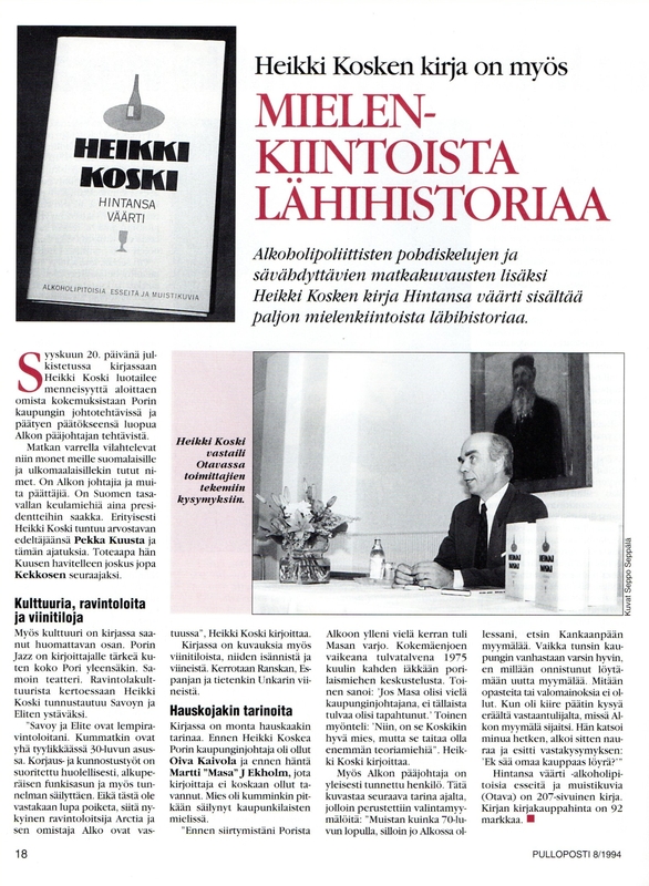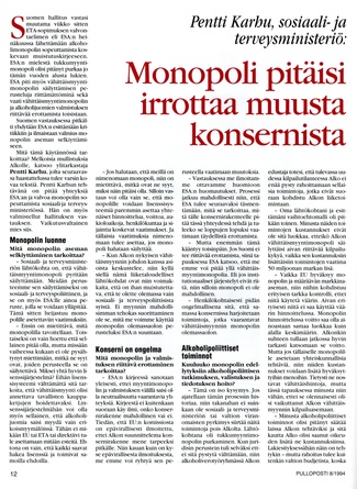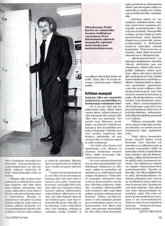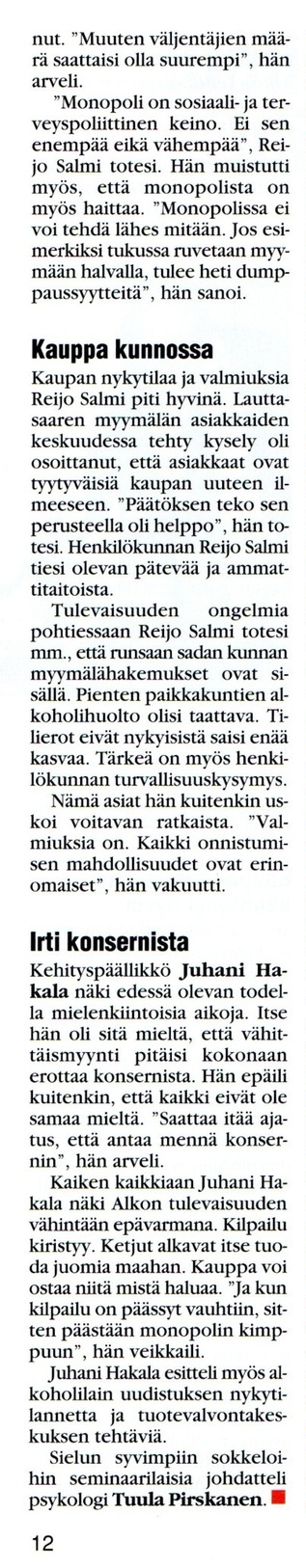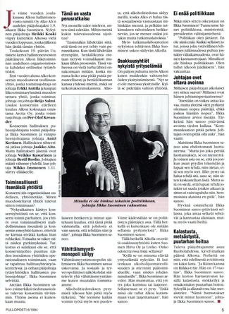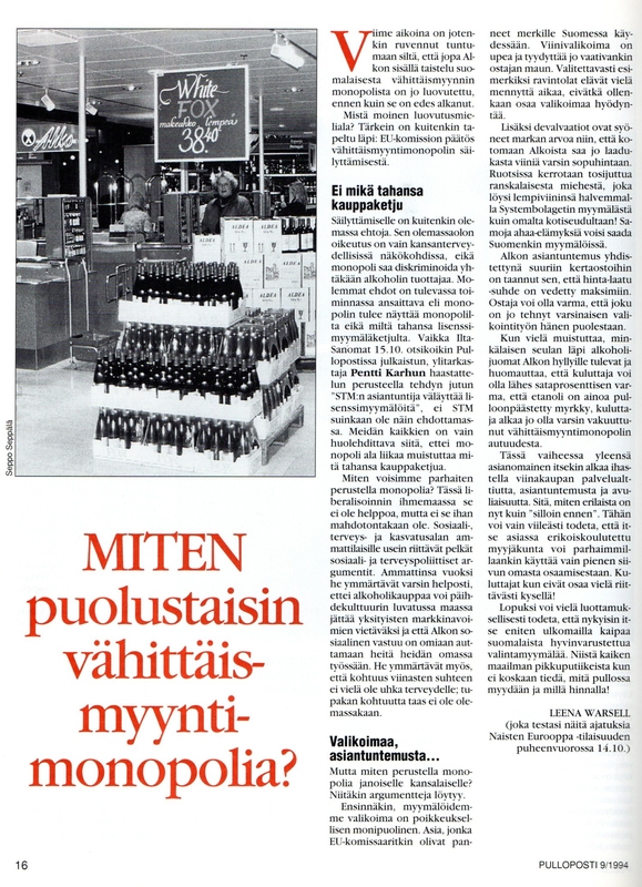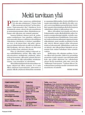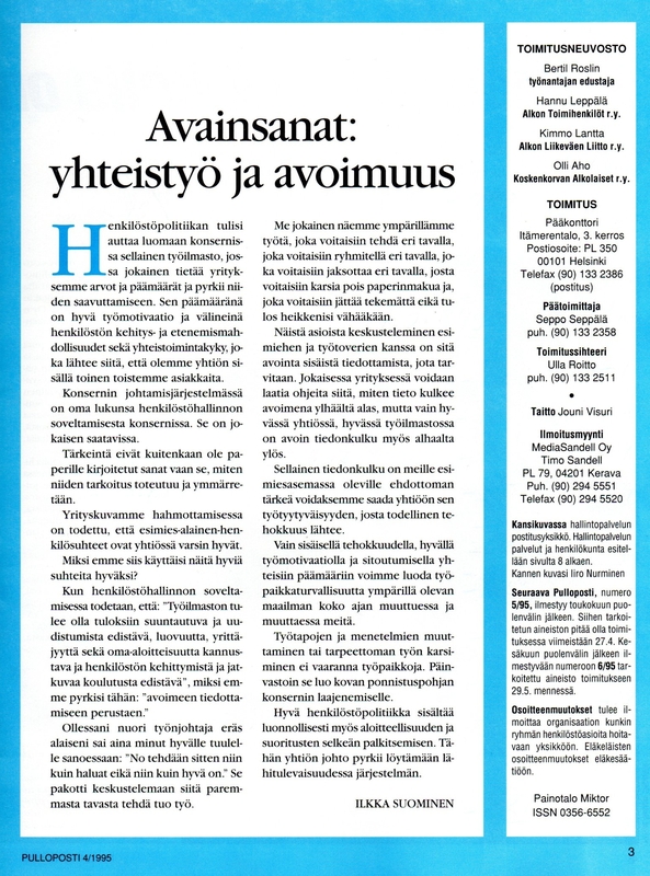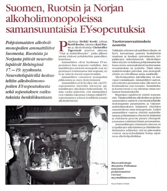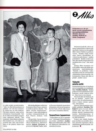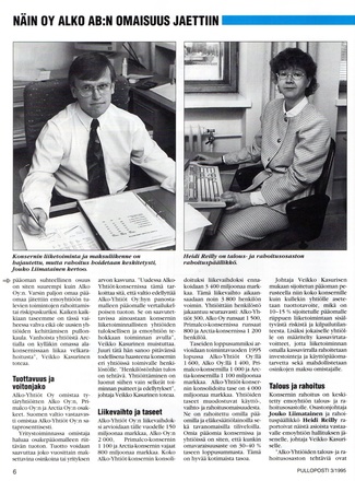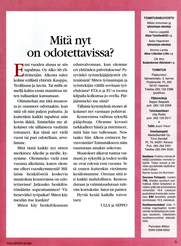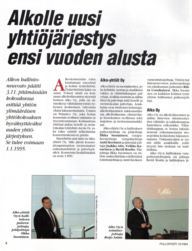 Alko Oyn kanssa oli neuvottelut aloitettu, mutta asia oli vielä kesken. Pulloposti tulisi ainakin toistaiseksi jatkamaan konsernilehtenä.