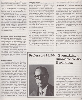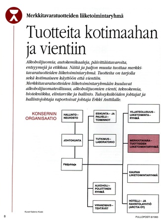 Palataanpa vielä aikaan, jolloin vanha Alko oli juuri organisoitu uuteen uskoon. Oheisessa jutussa johtaja Veikko Kasurinen kertoo miten Oy Alko Ab:n omaisuus pilkottiin. Tytäryhtiöt saivat osansa ja jotakin jätettiin emoyhtiöllekin.