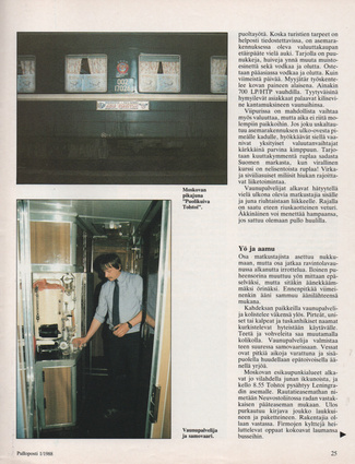 Myymälässä kävi myös venäläisiä asiakkaita ja heitäkin palveltiin venäjänkielisillä ikkunateippauksilla ja sisäopasteissa olevilla juomaryhmä ja makeusastetiedoilla. Lisäpaukkuja venäläisten palvelemiseen haki Marja Kultanen opiskelemalla aktiivisti venäjää työväenopistossa.