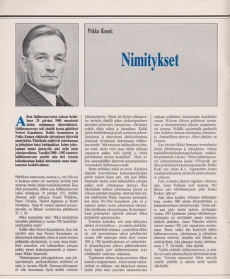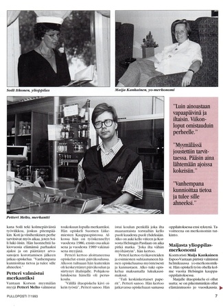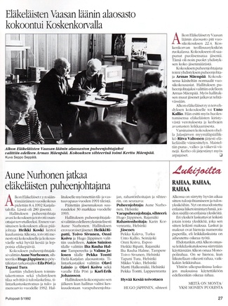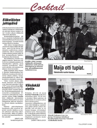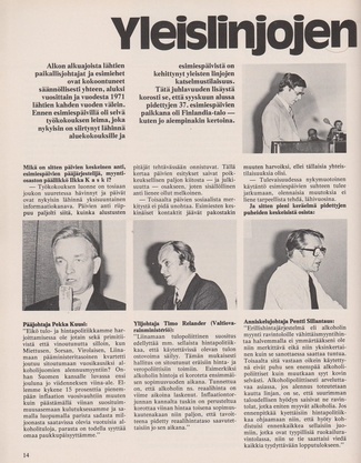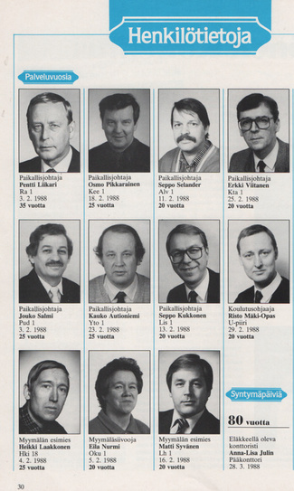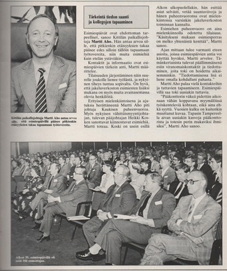 Aarne U. Mäkinen, Reijo Salmi ja Ilkka Näsänen astuivat kehiin. Ilkka Kaski kimposi pääkonttoriin.