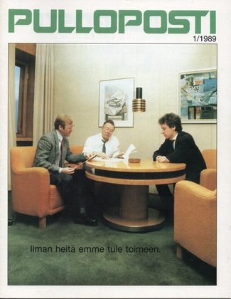 Vuoden 1976 ensimmäisen Pullopostin kansikuvan on ottanut Kalervo Eriksson. Se liittyi lehdessä olleeseen artikkeliin "Suhteeni kanssaihmisiin". Kuva esittää ruokkeja, joilla on tapana kerääntyä kallioille ikään kuin jutustelemaan. Ilmapiiri hyvinvoivassa työyhteisössä on yleensä vapaa ja leppoisa. Kevyttäkin keskustelua sallitaan ja siihen rohkais-taan, mutta se sivuaa koko ajan yhteisön tehtäviä, kertoi kuvateksti.