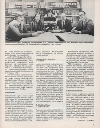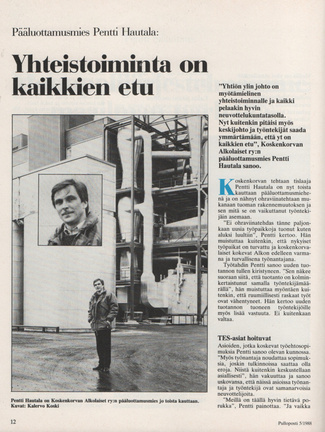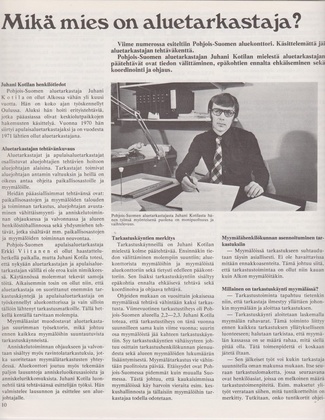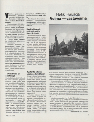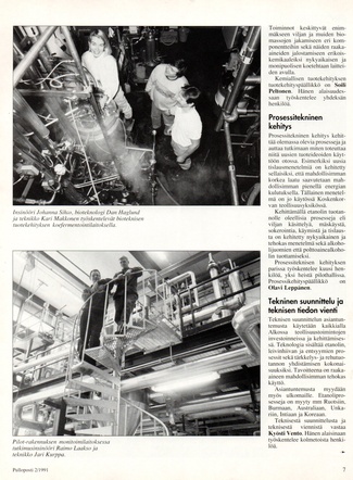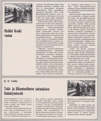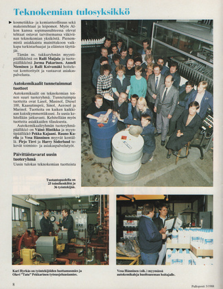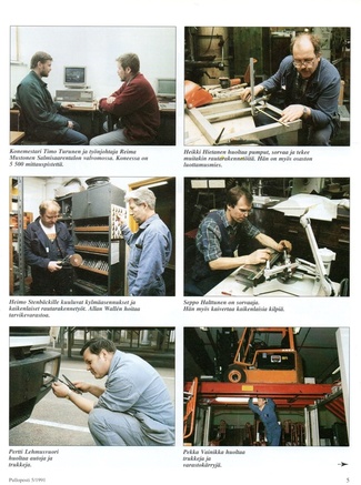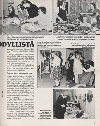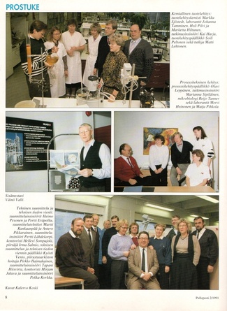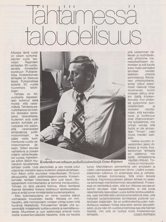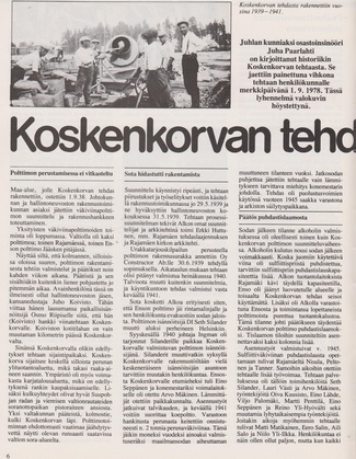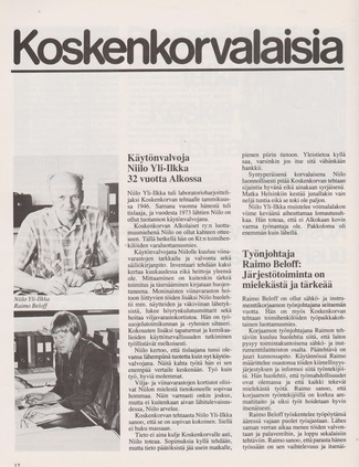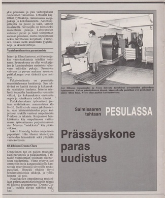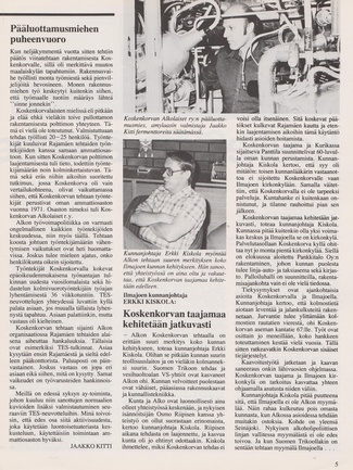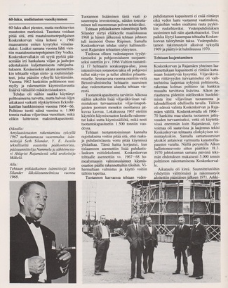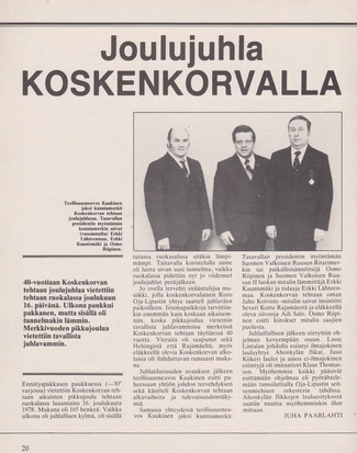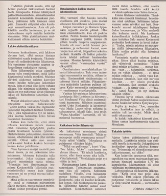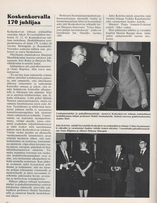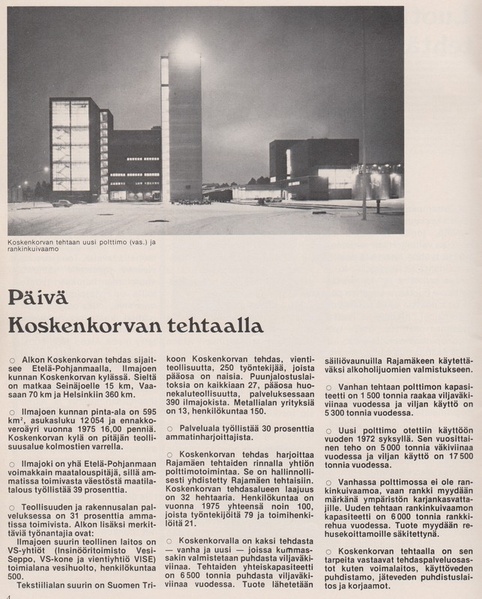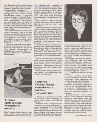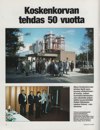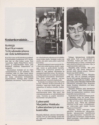 Koskenkorvan tehdasta esiteltiin laajastii kuudella sivulla. Peräti 17 henkilökunnan edustajaa kuvattiin ja haastateltiin.