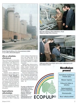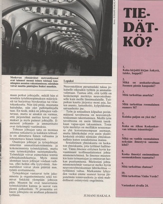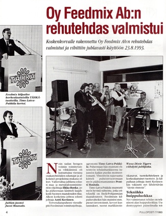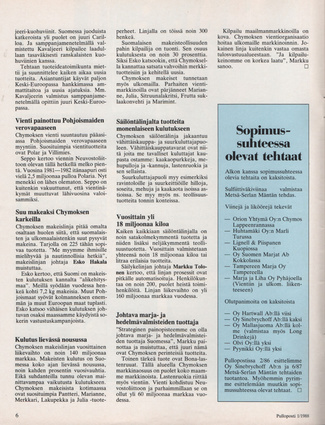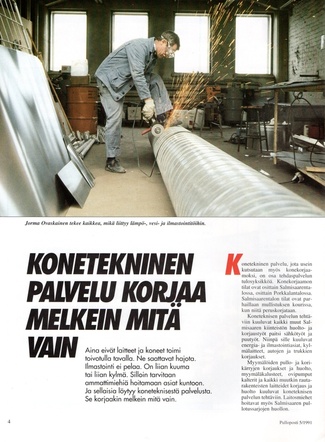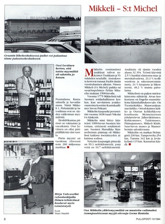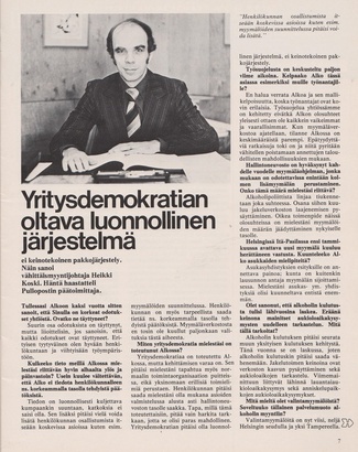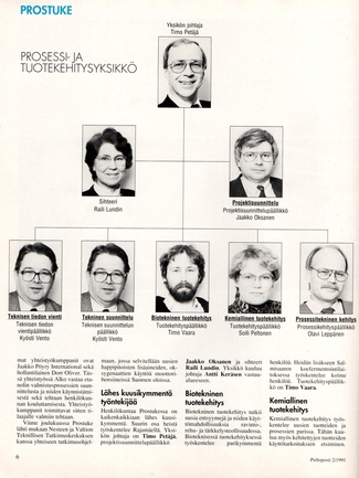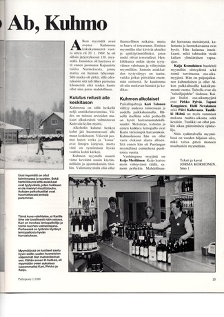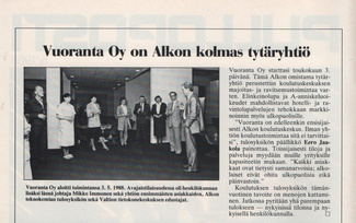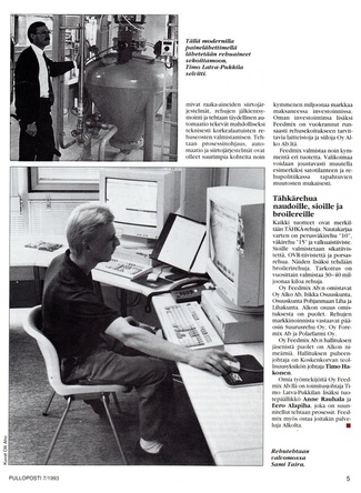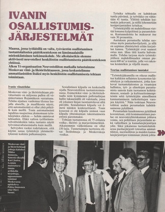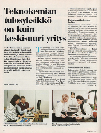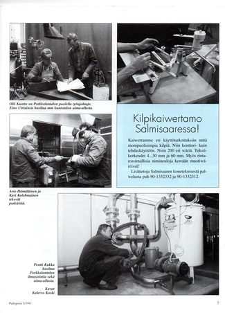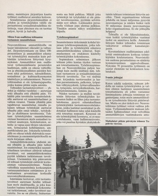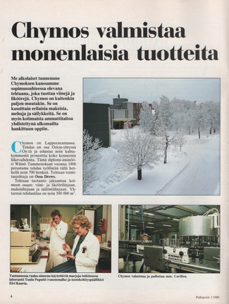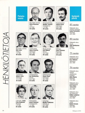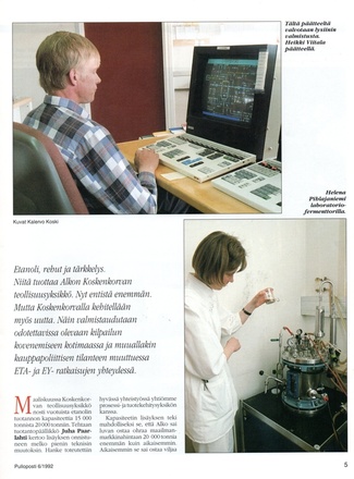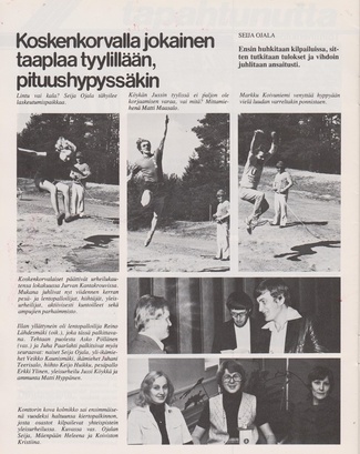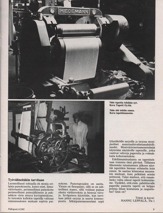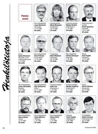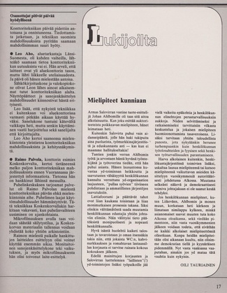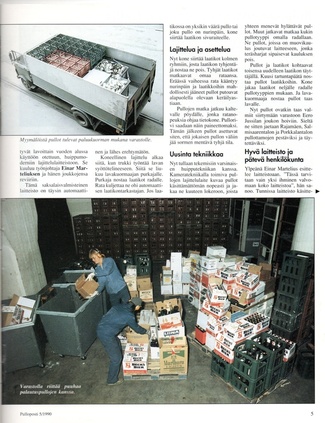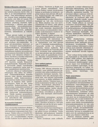 Koskenkorvan tehdasta esiteltiin laajastii kuudella sivulla. Peräti 17 henkilökunnan edustajaa kuvattiin ja haastateltiin.