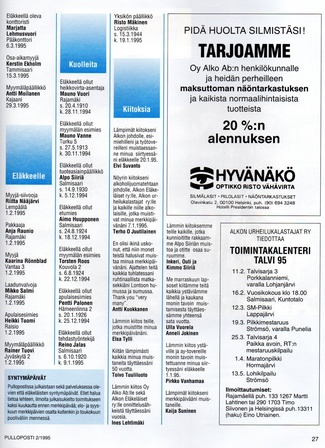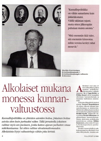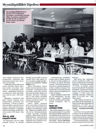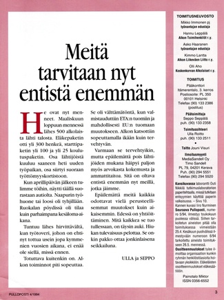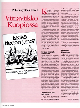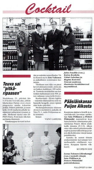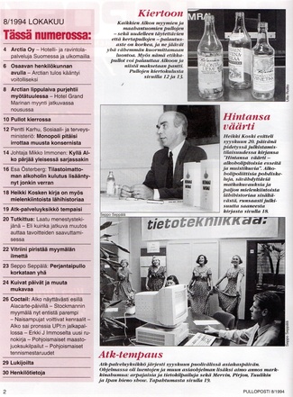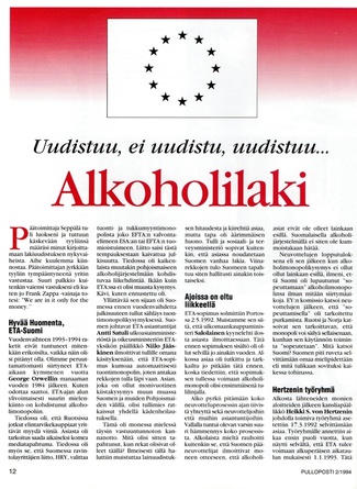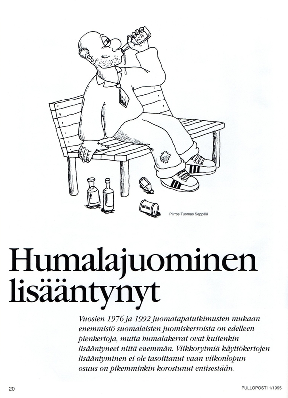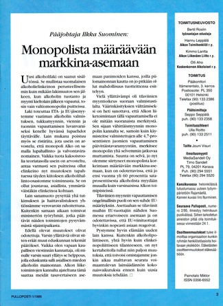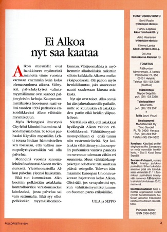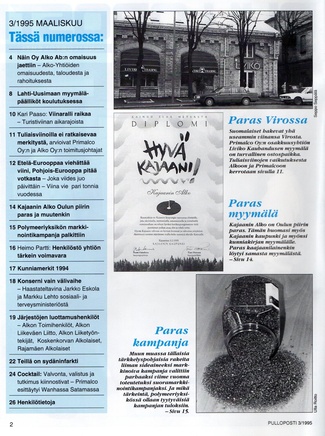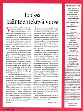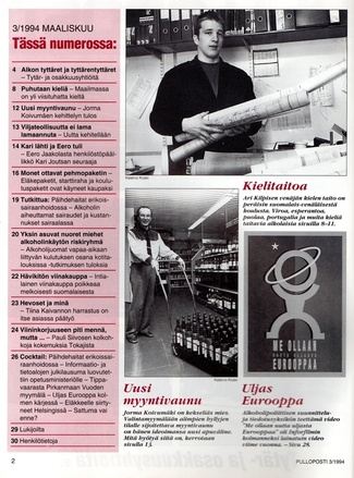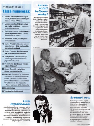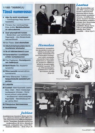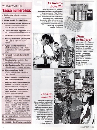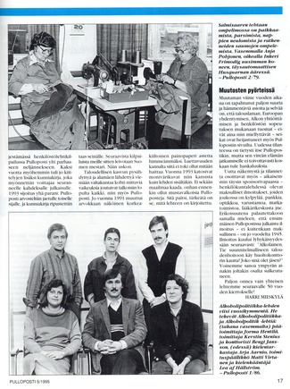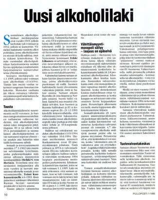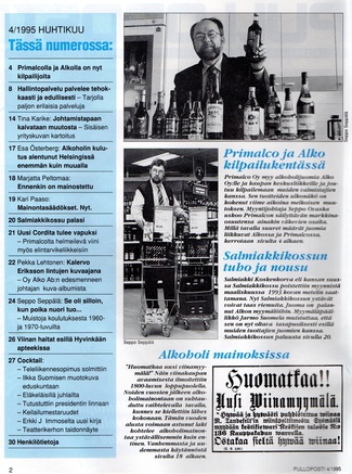 Tässä tämän Pullopostin sisältö. Paljon asiaa olikin kertynyt vuoden 1995 ensimmäiseen numeroon. Merkittävin asia oli uuden alkoholilain voimaantulo.