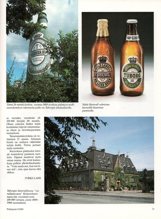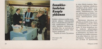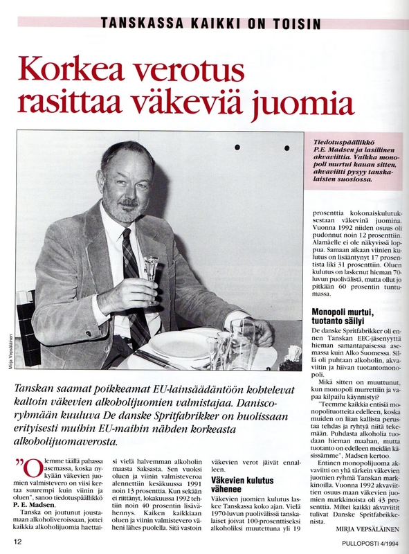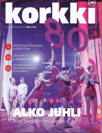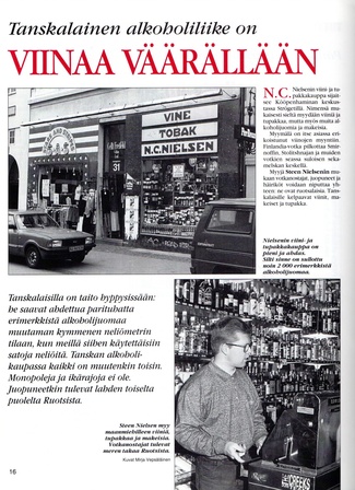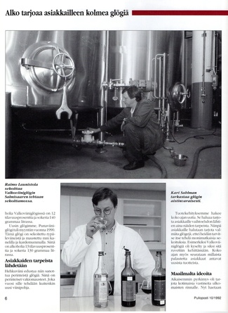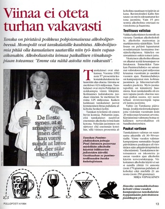 Pari suomalaista viinakoiraa ja niiden tanskalainen viinaporsas kollega komeilivat henkilöstölehden kannessa