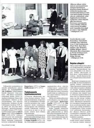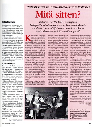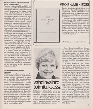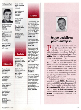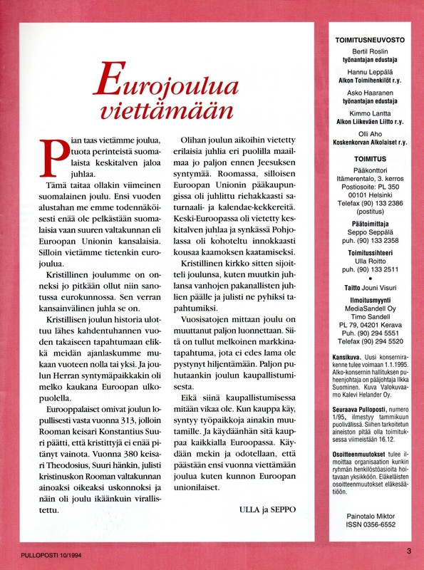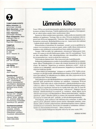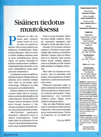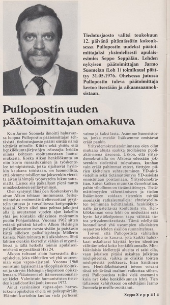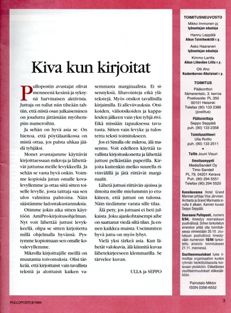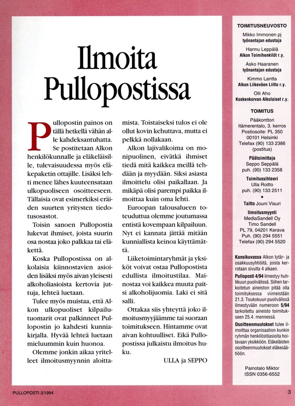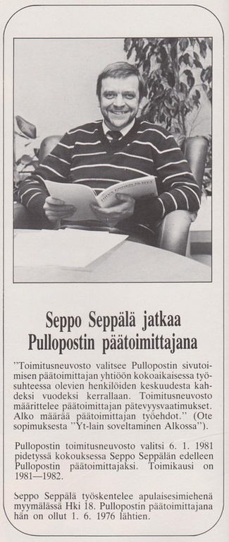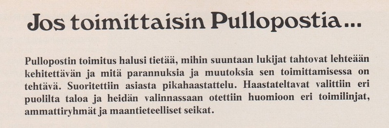 Pullopostin toimitusneuvostossa oli tapahtunut muutos, kun Mikko Immonen oli vaihtunut jo edellisen vuoden viimeisessä numerossa Bertil Rosliniin.