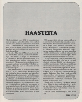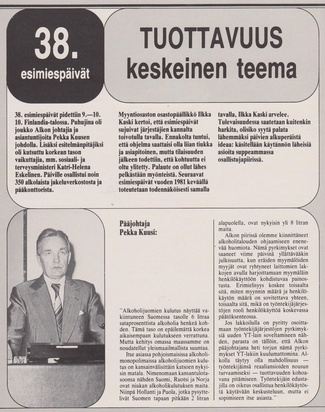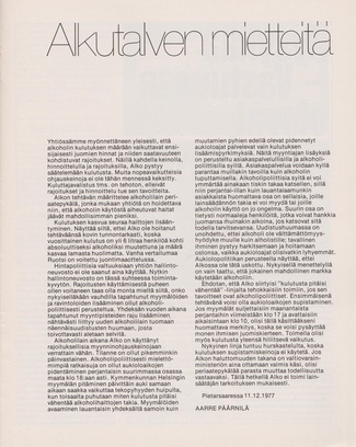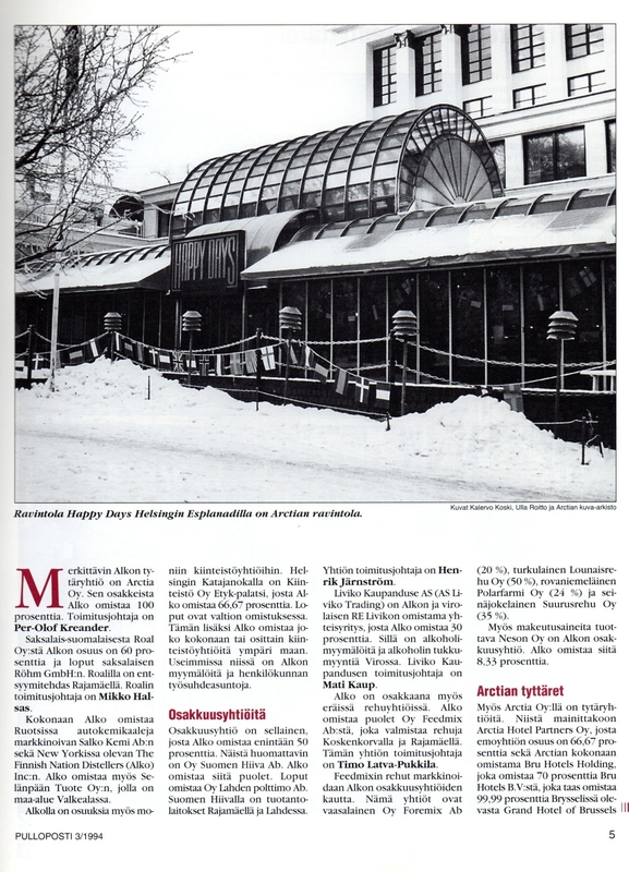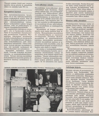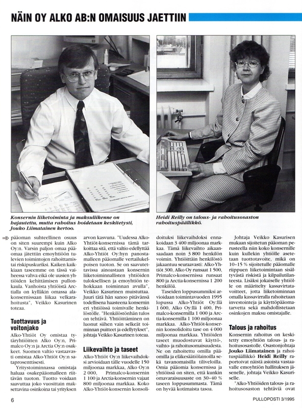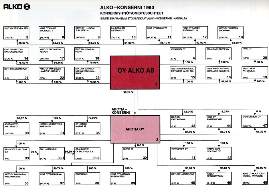 Mielenkiintoista on lukea millaiset olivat toiveet ja odotukset noina aikoina. Alko-Yhtiöt Oy omisti tytäryhtiöidensä Alko Oy:n, Primalco Oy:n ja Arctia Oy:n osakkeet. Suomen valtio omisti koko Alko-Yhtiöt Oy:n sataprosenttisesti. Omistaja halusi osakepääomalleen riittävän tuoton ja sen tuoton saattoi saavuttaa vain henkilöstön tehokkaalla toiminnalla.