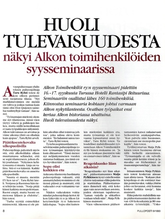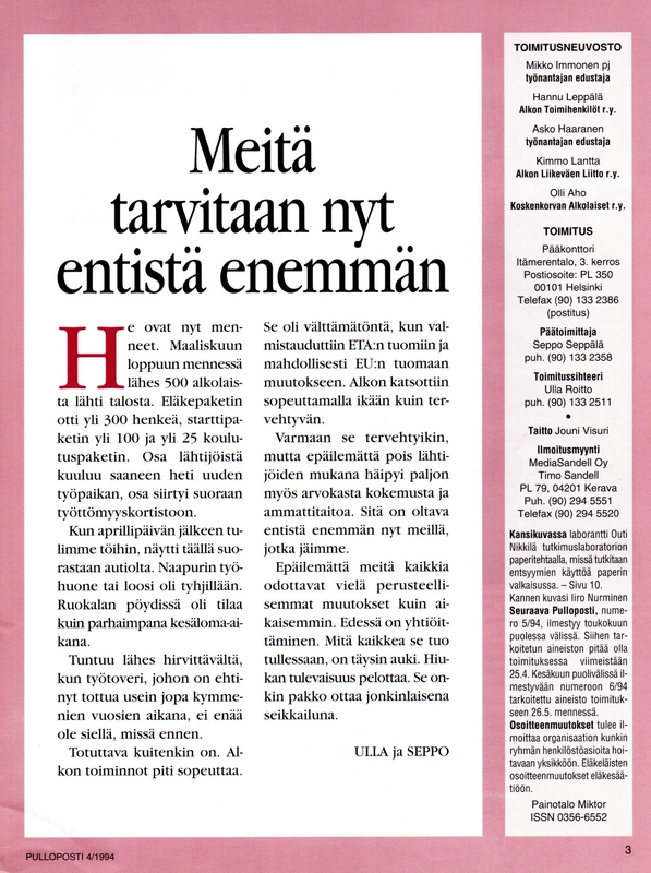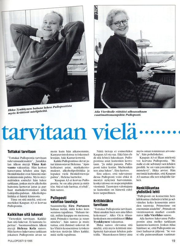 Kaksiset eivät olleet Pullopostinkaan tulevaisuuden näkymät. Organisaatiomuutos hajoitti alkolaiset eri yhtiöihin, joiden intressitkin olivat erilaiset. Ymmärrettiin, että Alko Oy ja Primalco Oy tarvitsivat omat henkilöstölehtensä.