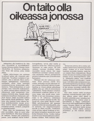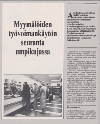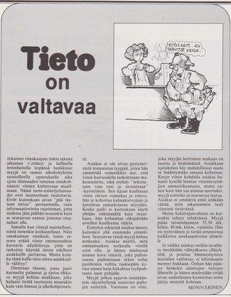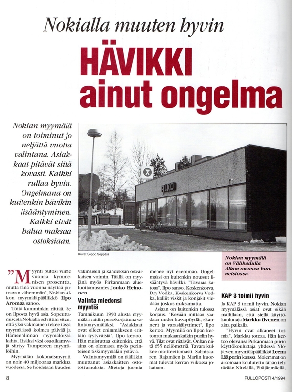 Mikrokirjoitus Ky:n konsultti Pentti Kokki oli autoradiostaan kuunnellut uutisia Alkon monopolin osittaisesta purkamisesta. Hyllytilojen osaaja kun oli, niin soitti Alkoon ja tarjosi apuaan. Heti tärppäsi.