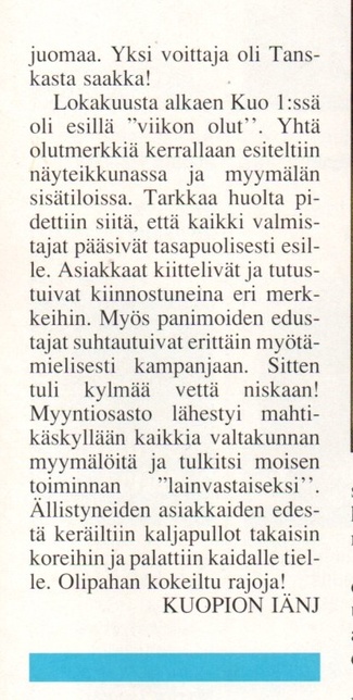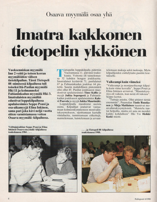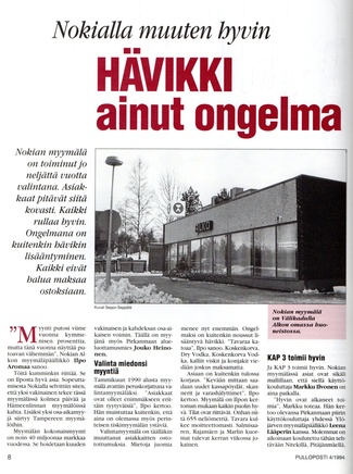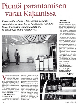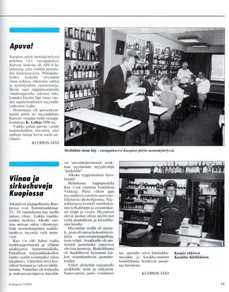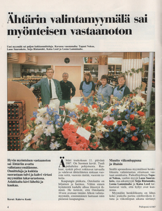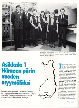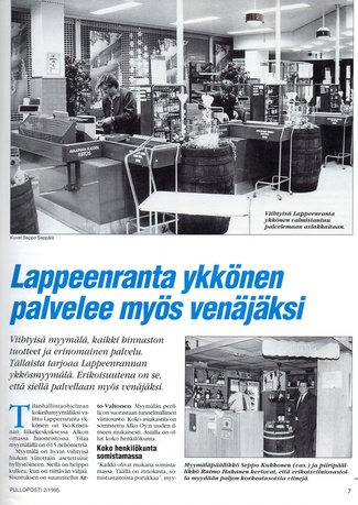 Lappeenranta ykkönen oli viihtyisä myymälä, jossa oli tarjolla kaikki hinnaston tuotteet ja erinomainen palvelu. Myymäläpäällikkö Seppo Kukkosella oli Iso-Kristiinan liikekeskuksessa sijaitsevassa 615 neliömetrin myymälässään myös osaava ja innostunut henkilökunta. Ei ihme, että se oli Kymen piirin paras myymälä, kuten piiripäällikkö Raimo Hakanenkin todisti.