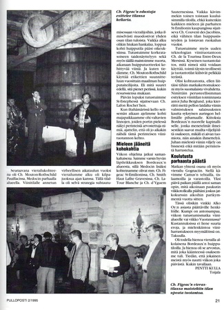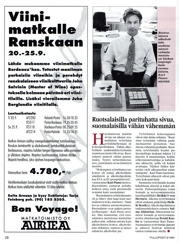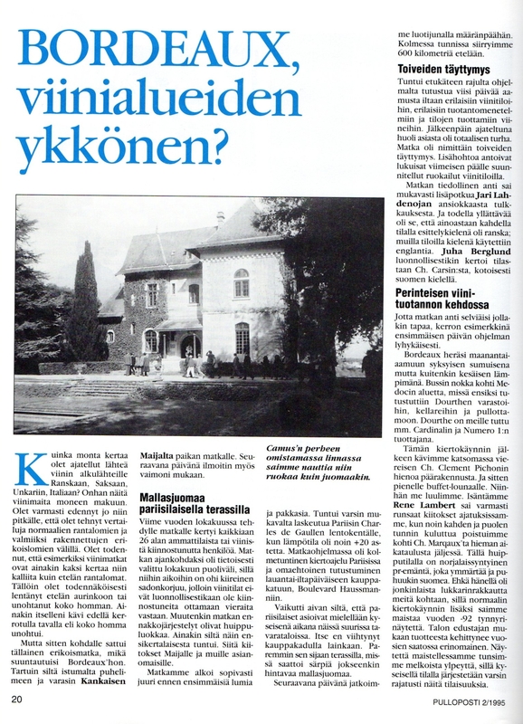 Kullan Pentti oli vaimoineen käynyt Kankaisen Maijan organisoimalla matkalla Bordeauxin viinialueelle. Viineistä kiinnostuneita osanottajia oli mukana kaikkiaan 26.