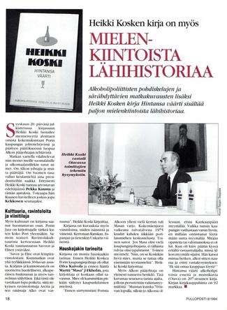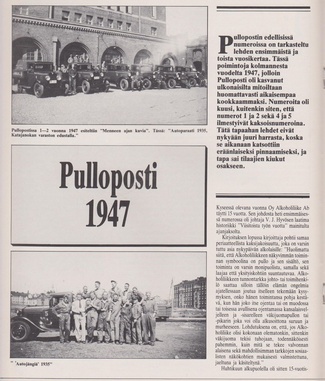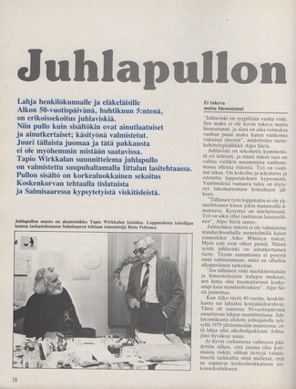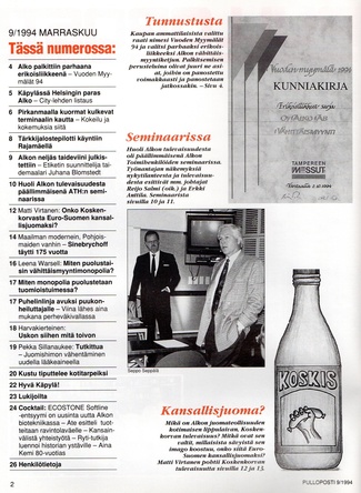Tässä Pullopostissa esiteltiin Koskenkorvan tehdasta, kerrottiin myyntiosaston vahdinvaihdosta, tiedusteltiin lukijoiden mielipidettä lehden kehittämisestä, korkkiruuvattiin Kankaisen Maijaa ja julkaistiin perinnekilpailun voittajan kirjoitus.