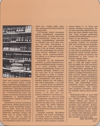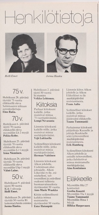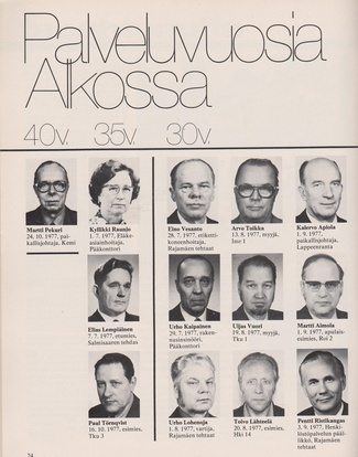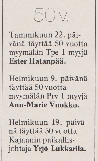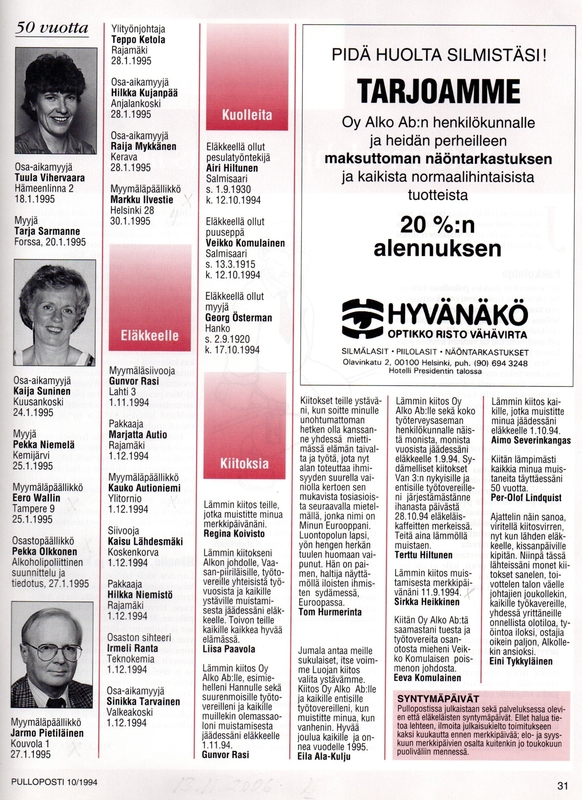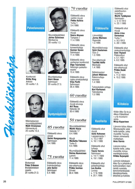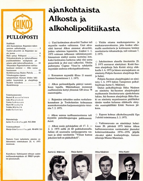 Oli tässä henkilöstölehdessä paljon muutakian asiaa. Alko avasi 200.valintamyymälänsä ja Pulloposti täytti 50 vuotta!
