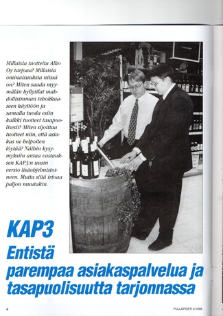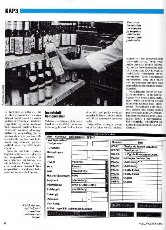 KAP3 oli tuolloin jo jokapäiväistä kauraa, sillä se oli Alkon tietoliikenteen perusta. Sitä kuitenkin kehitettiin koko ajan lisää. Merkittävä uudistus oli tuotteiden tuotetietojärjestelmä eli ominaistietojen lisäys siihen."Tämä on kovaa tavaraa" totesi silloinen järjestelmäpäällikkö Jorma Peltola. Ja olihan se. Uudella ohjelmalla saatiin hetkessä näyttöön tai paperille esiin kaikki tuotteeseen liittyvät tiedot.