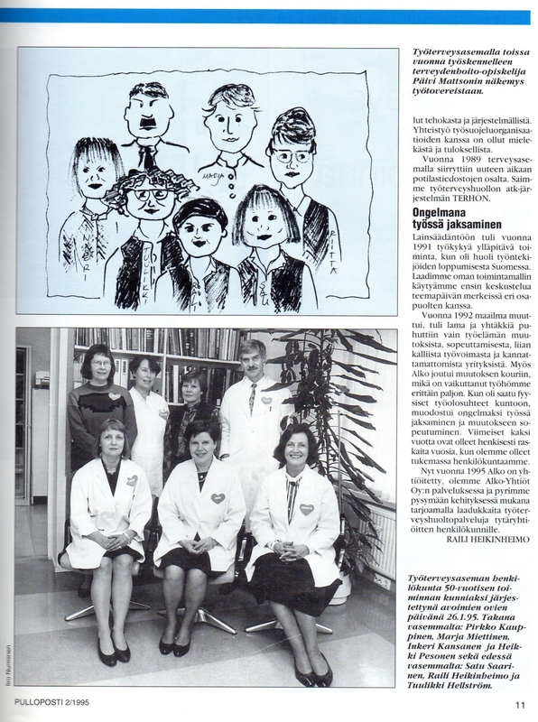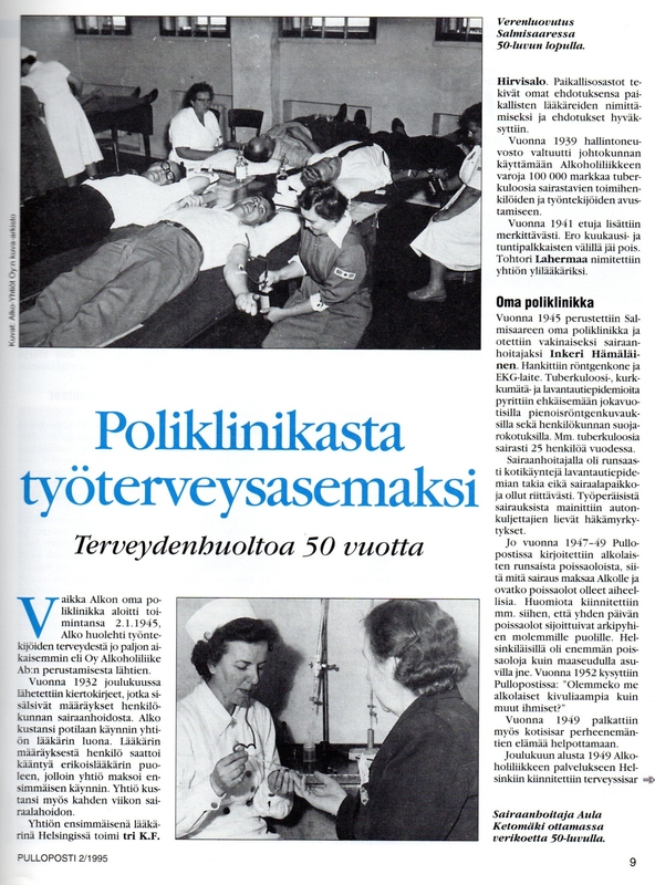 Alkon poliklinikka täytti 50 vuotta. Kyllähän Alko oli pitänyt huolta väestään jo heti perustamisestaan alkaen, mutta vuonna 1945 perustettiin oma poliklinikka.