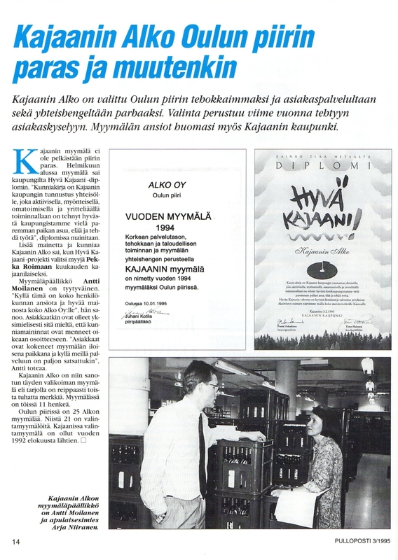 Myös Kajaanin kaupunkikin oli sen huomannut ja huomioinut diplomilla. Myyjä Pekka Roimaa valittiin samalla kuukauden kajaanilaiseksi. Kelpasi myymäläpäällikkö Antti Moilasen ja apulaisesimies Arja Niirasen olla iloisia ja tyytyväisiä tehtyyn työhön.