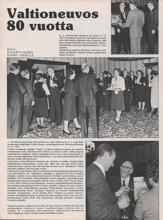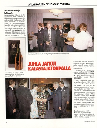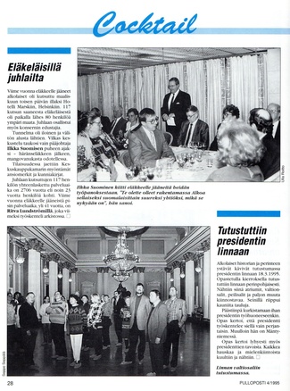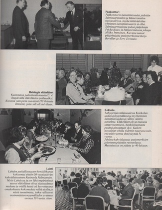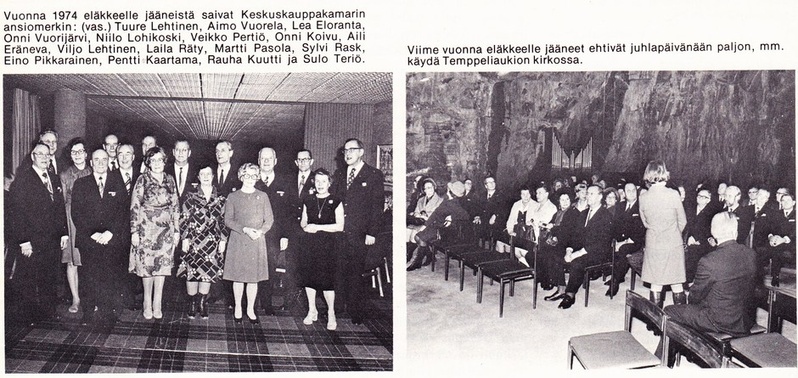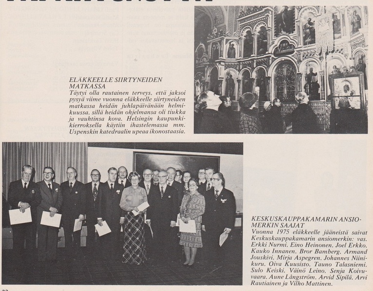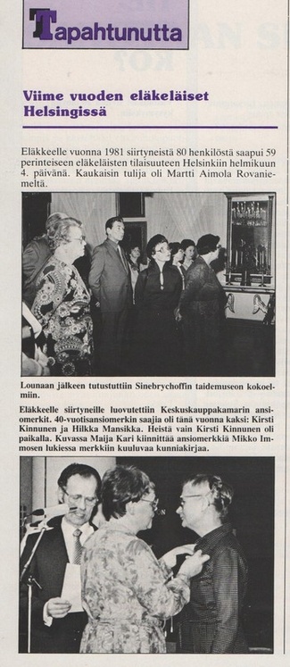 Kaikki edellisenä vuonna eläkkeelle jääneet kutsuttiin Helsinkiin juhlimaan. Osa sai eläkkeelle lähtiessään Keskuskauppakamarin ansiomerkin rintapieleensä. Pulloposti kuvasi ja kirjasi tapahtumat.